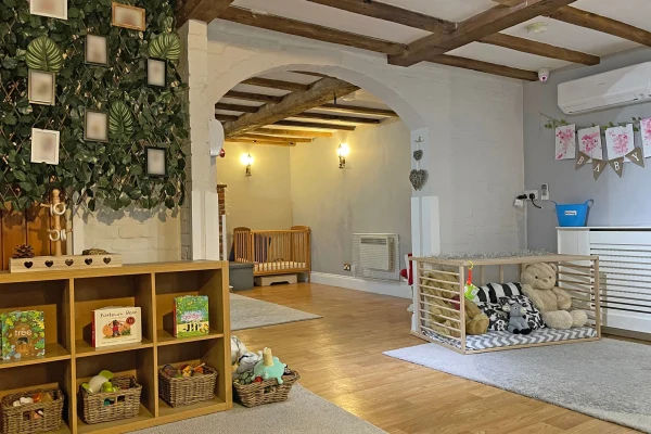 Inside charming brick cottages and a cosy log cabin-style room, our nursery feels warm, familiar and welcoming. Natural materials, soft tones and thoughtfully designed spaces create a calm environment where children feel safe, settled and free to explore with confidence.